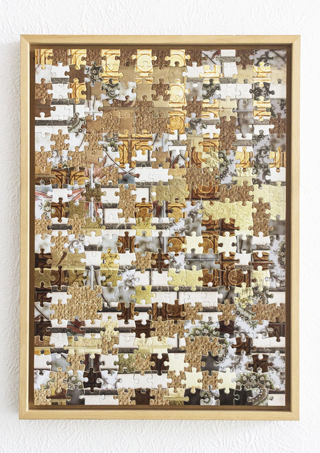 De Gilmansstraat 22 – 2100 Deurne Six puzzles with photographs of walls from one house randomly combined with each other in order to create a portrait of the house and its resident. Printed/laminated cardboard, hardboard, wooden frameEdition of 642×29,7cm2018