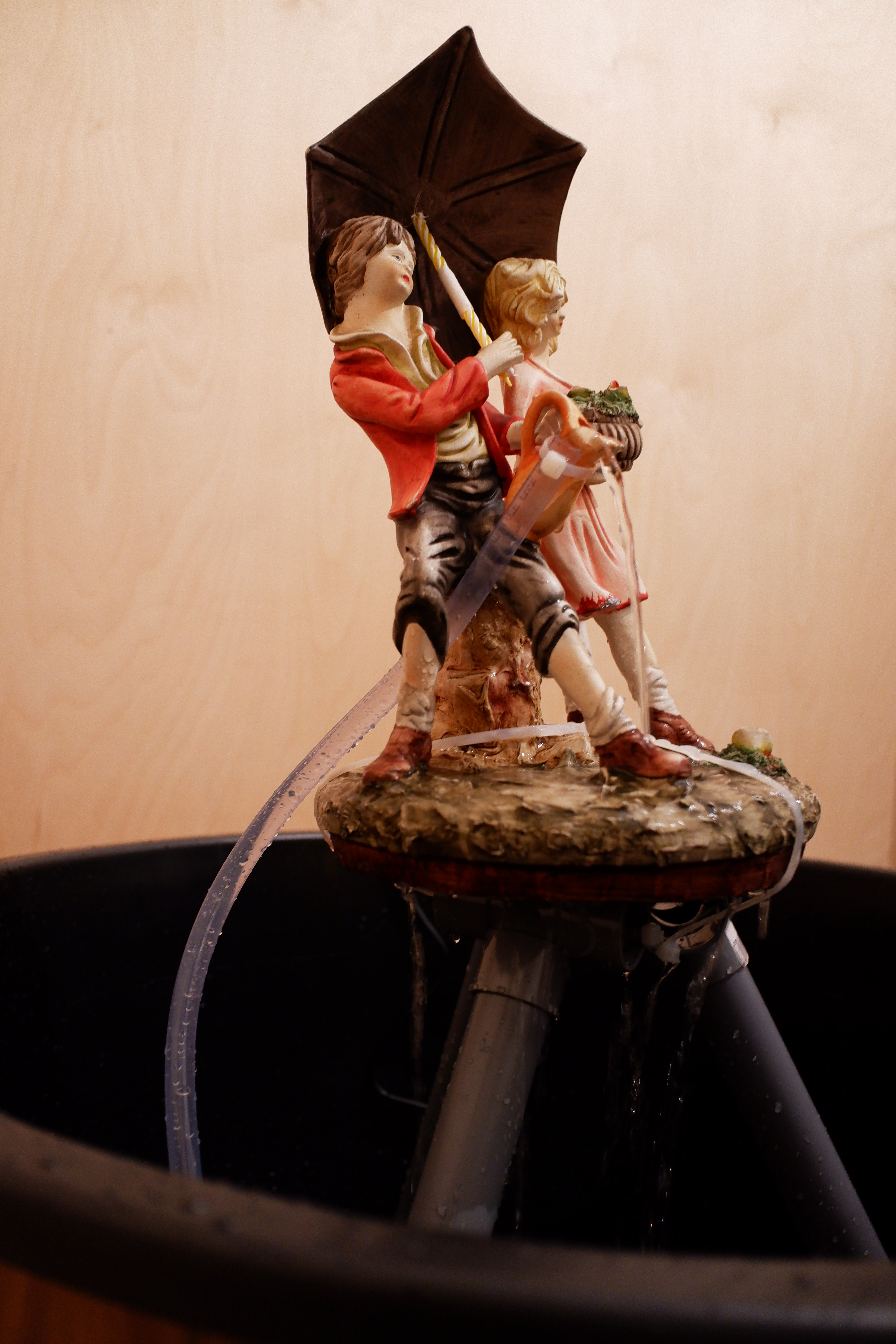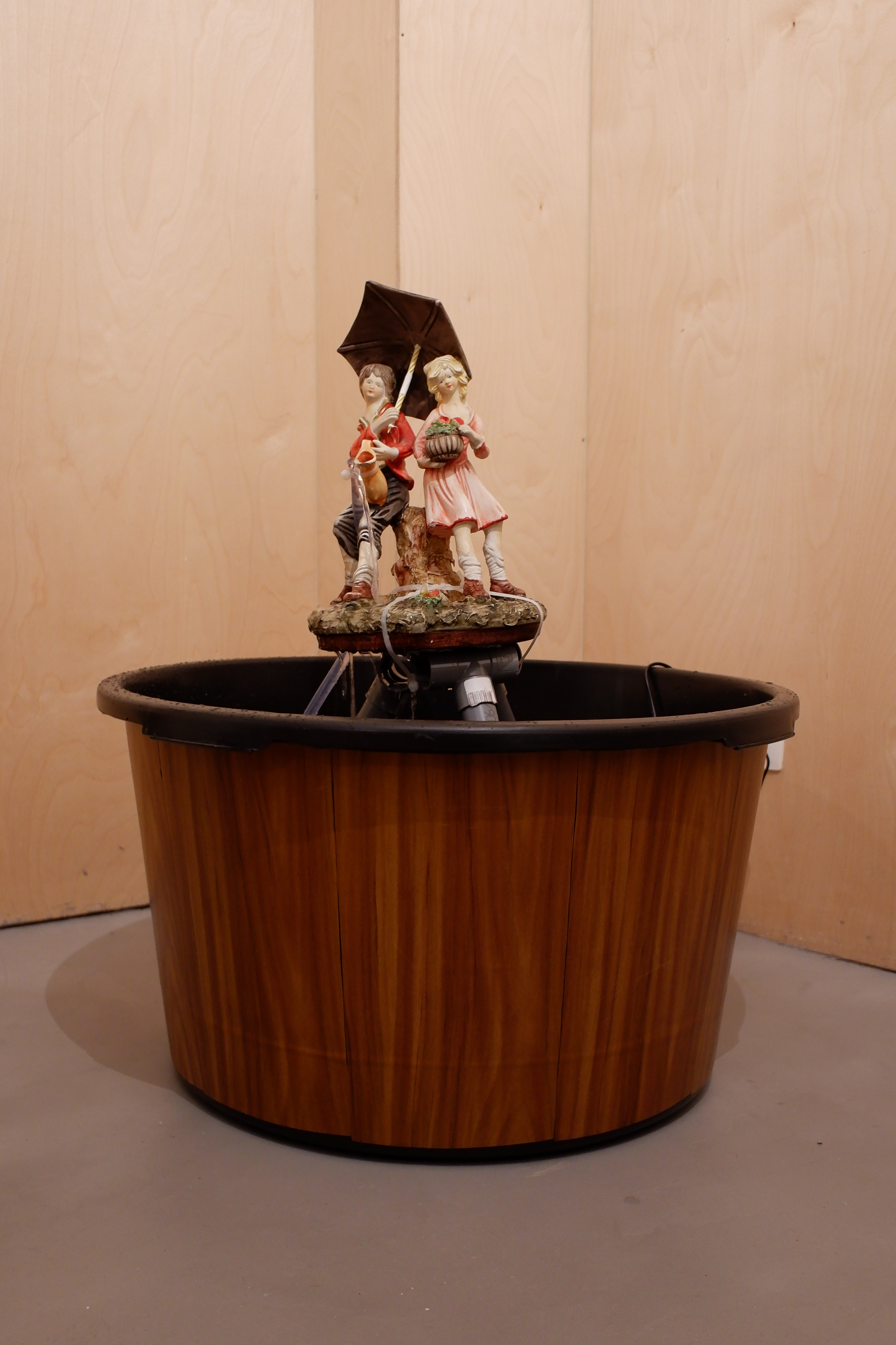 Easy Sunday (Do Yourself a Favor) A wishing well, made for the exhibition I AM A GOLDMINE/YOU ARE A GOLDMINE at Het Orakel/The Oracle Gallery, 2021 60x60x75cmPlastic, wax, water, fountain pump, ceramic, coins2021