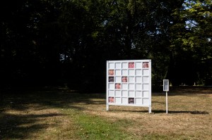 252cc, the cultural centre of Ekeren, asked me to work with the photographs they collected of the past cultural season and make a work in the park. I chose eighteen different faces of people who visited or worked at the cultural centre the last year and made a life-size memory game. The sequence of the faces was decided by two people who played the game in miniature version. Every step of their game was photographed, and later done again and scanned. This resulted in a publication that was available for free next to the memory board.