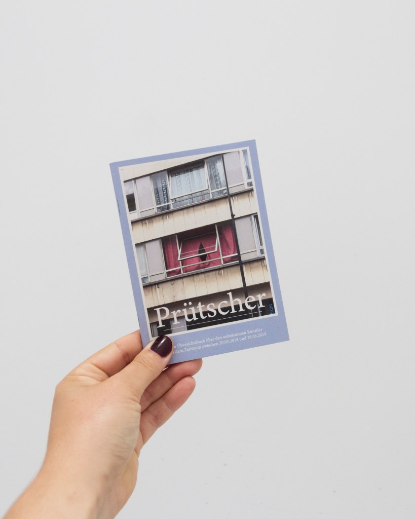 Prütscher: ein Übersichtsbuch über den unbekannten Künstler aus dem Zeitraum zwischen 20.03.2018 und 28.06.2019 Photos of works on the streets by the fictive artist Prütscher, taken with my phone between 20.03.2018 and 28.06.2019. A6Edition of 5040 pagesInside black and white, cover full color on recycled paper2019