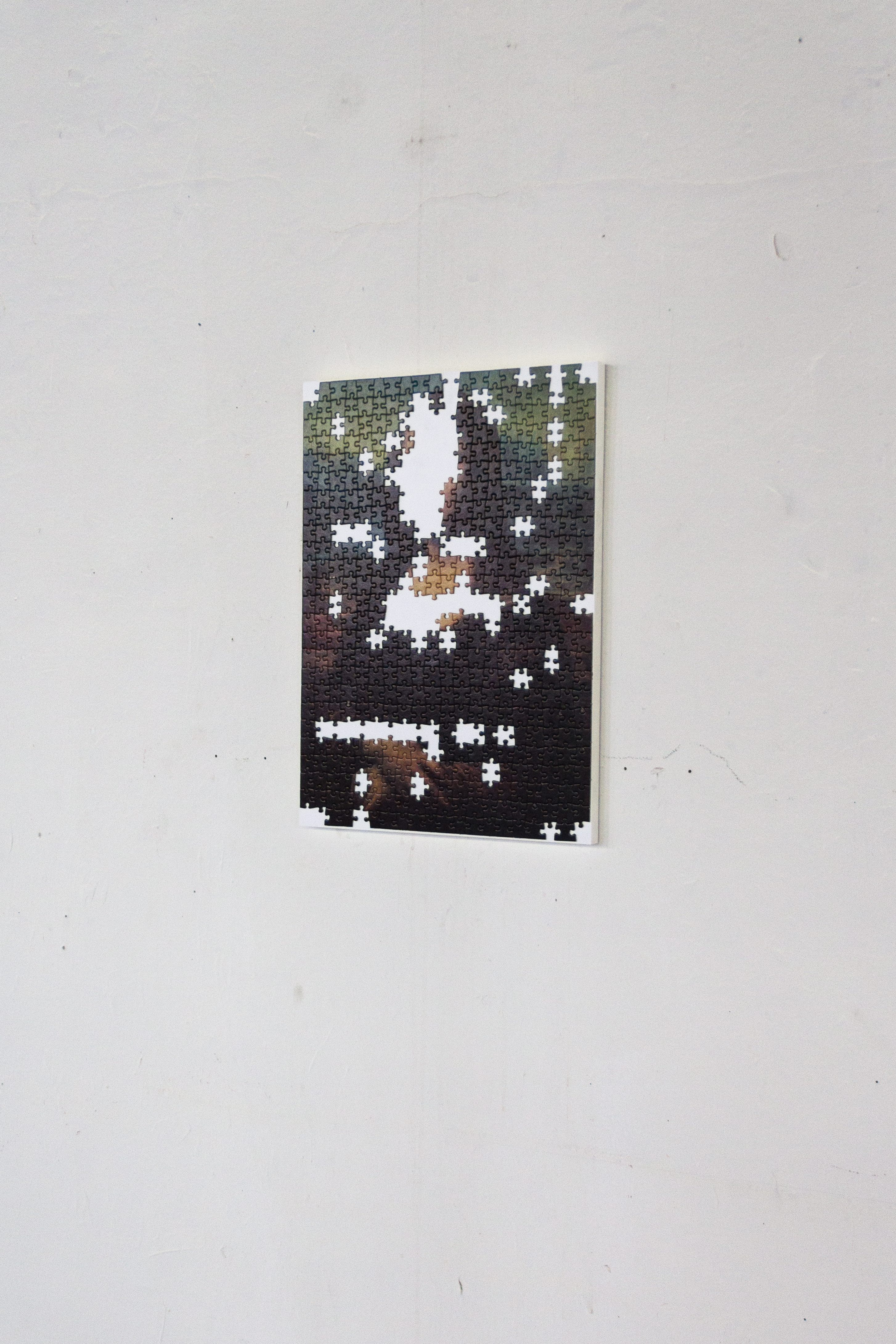 The Least Favourite Pieces of the Mona Lisa After showing Your Favorite Piece of the Mona Lisa, the left over pieces of the puzzle were brought together again. Puzzle pieces, mdf, lacquer35x48cm2019