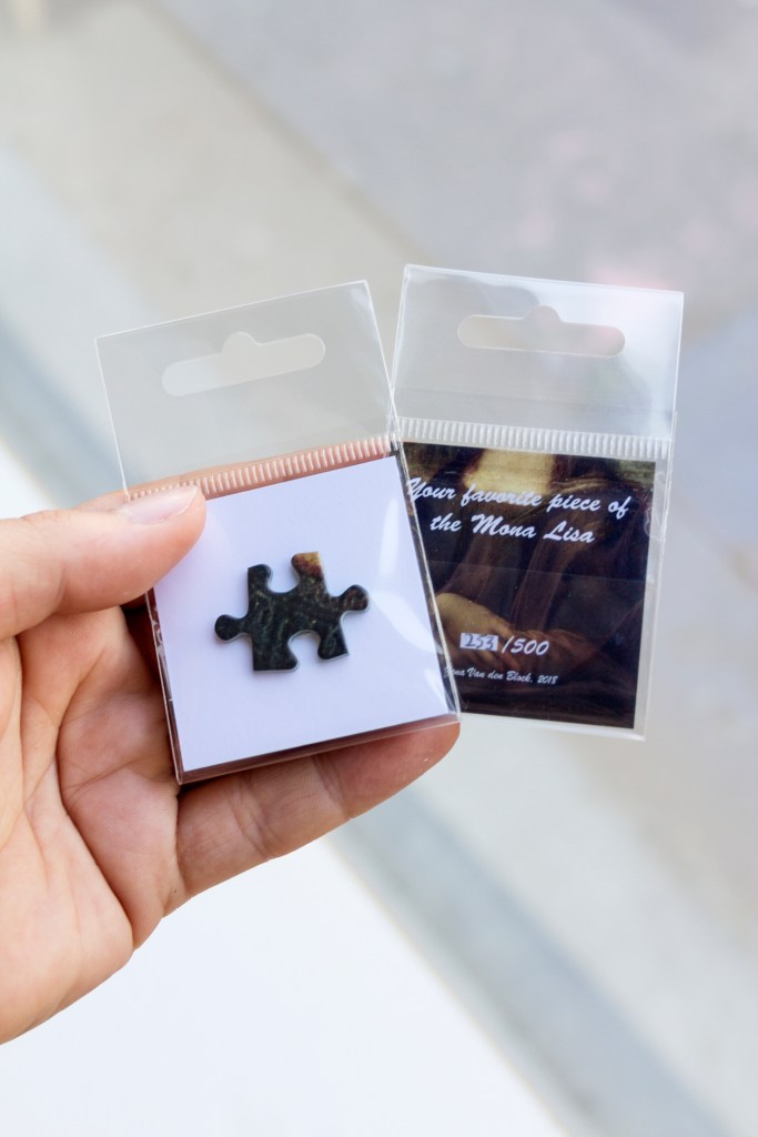 Your Favorite Piece of the Mona Lisa A 500 piece puzzle of the Mona Lisa, visitors could choose their favorite piece of the Mona Lisa and take it home for 1€. edition of 500100x125cm2018